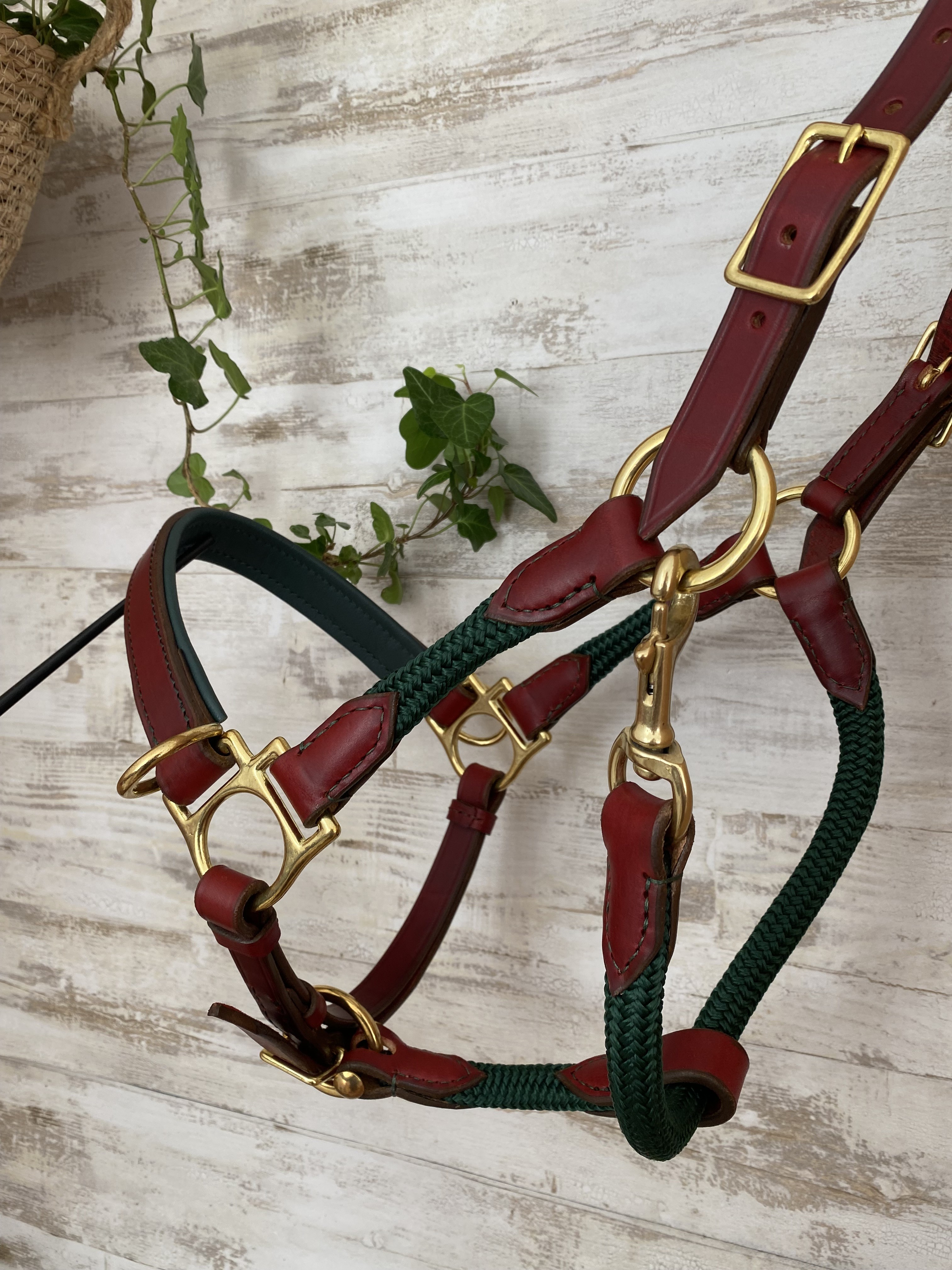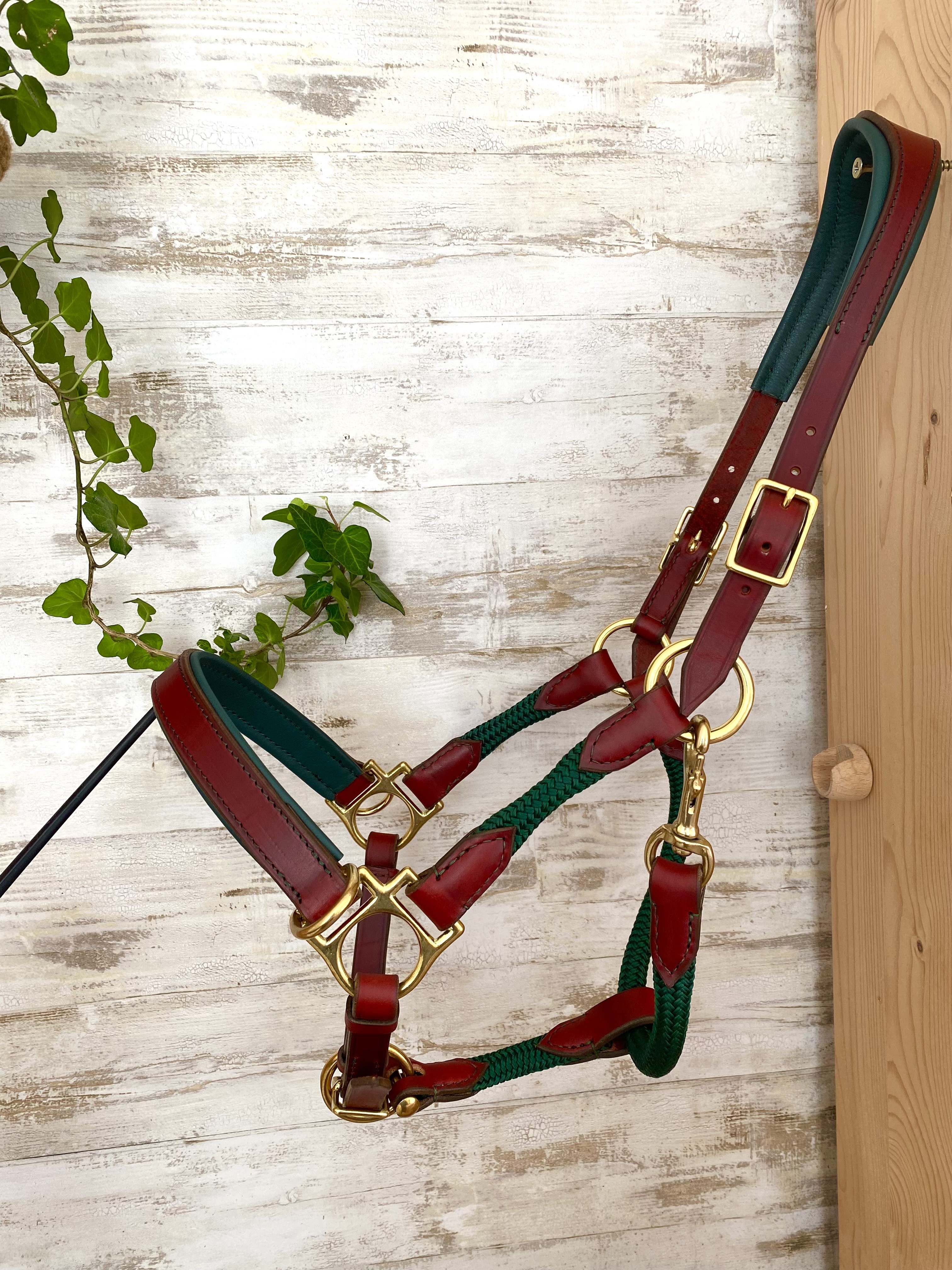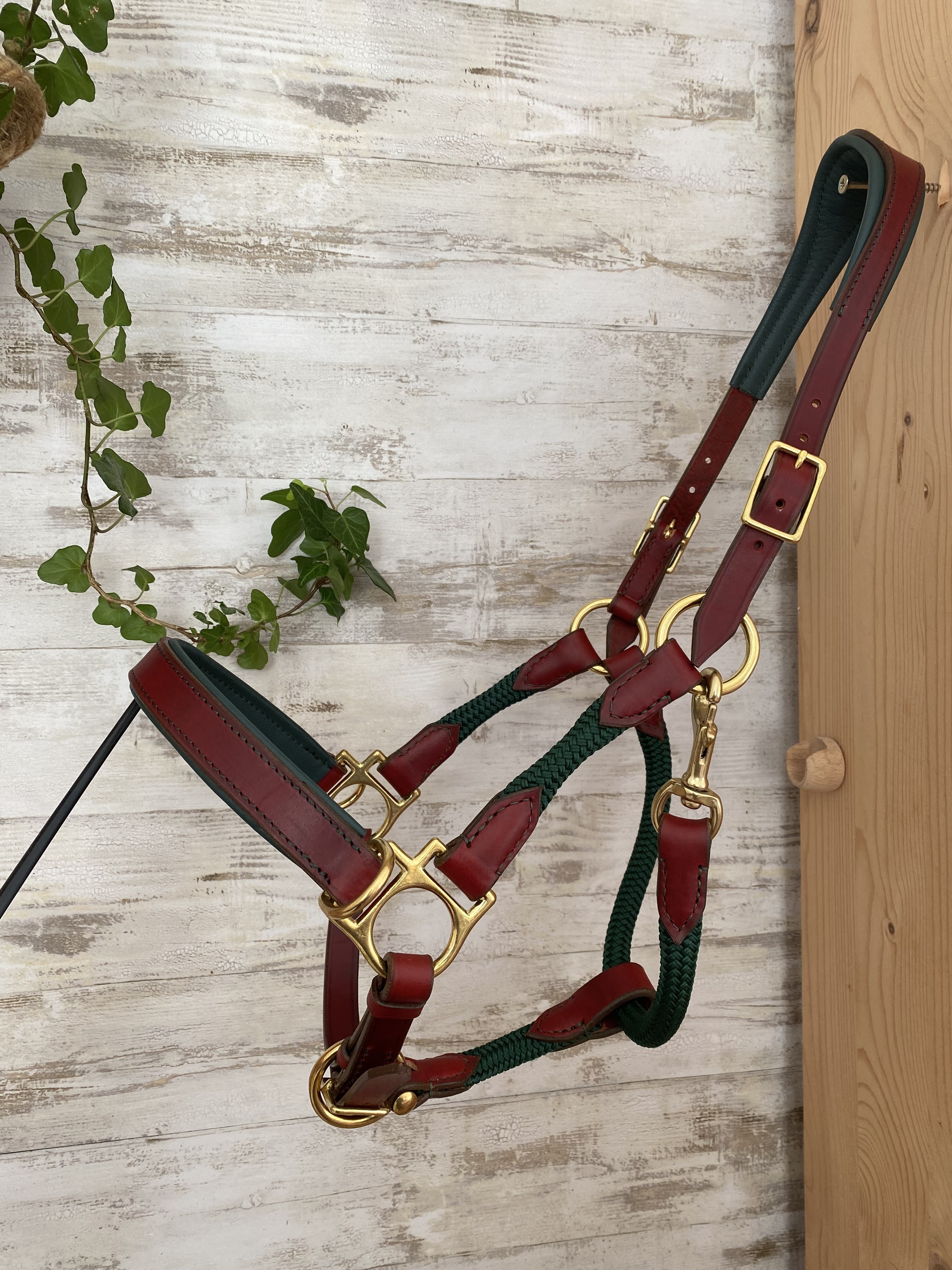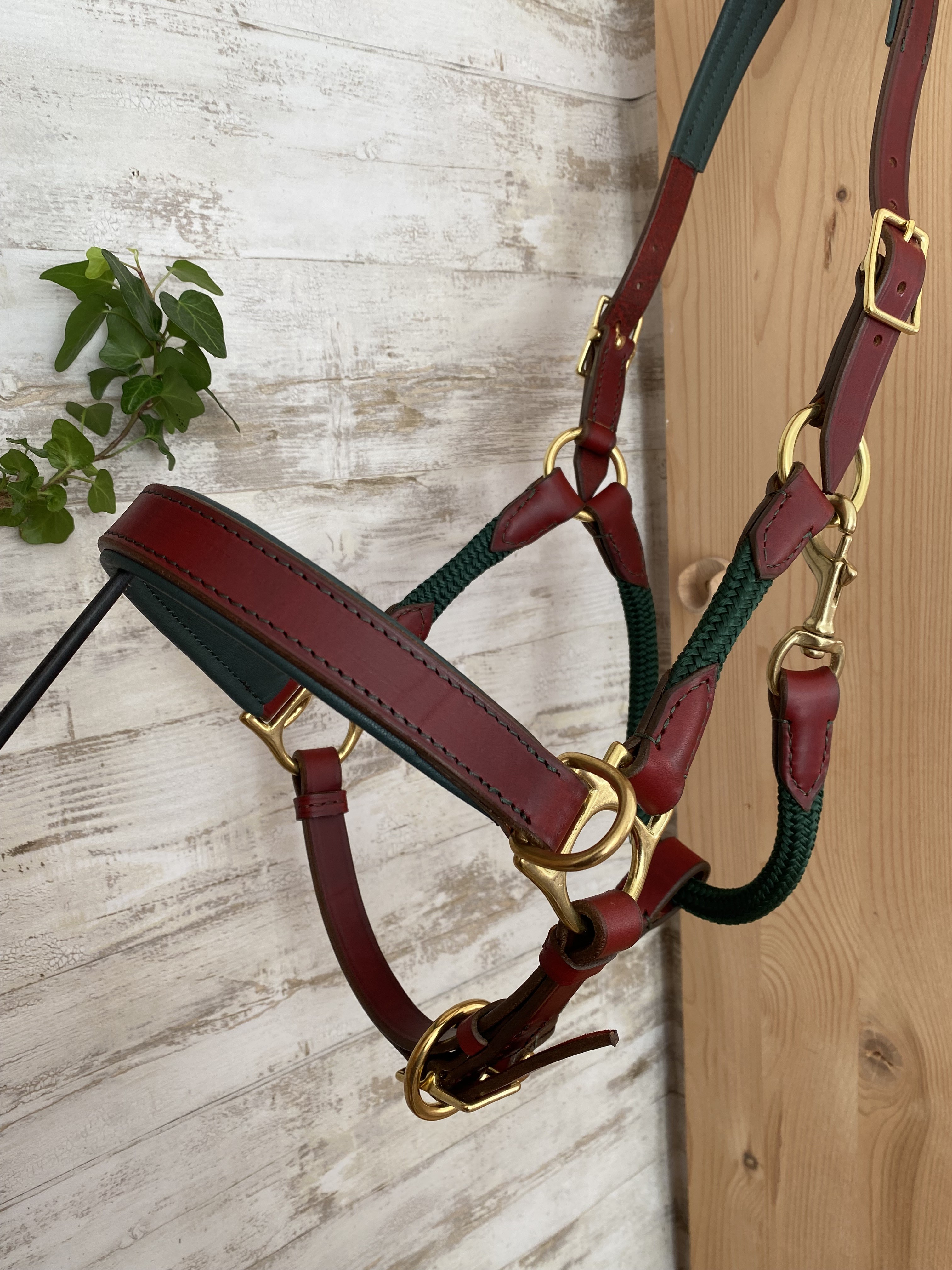 Il possède une muserolle droite avec une doublure vert sapin et une têtière anatomique doublée également.