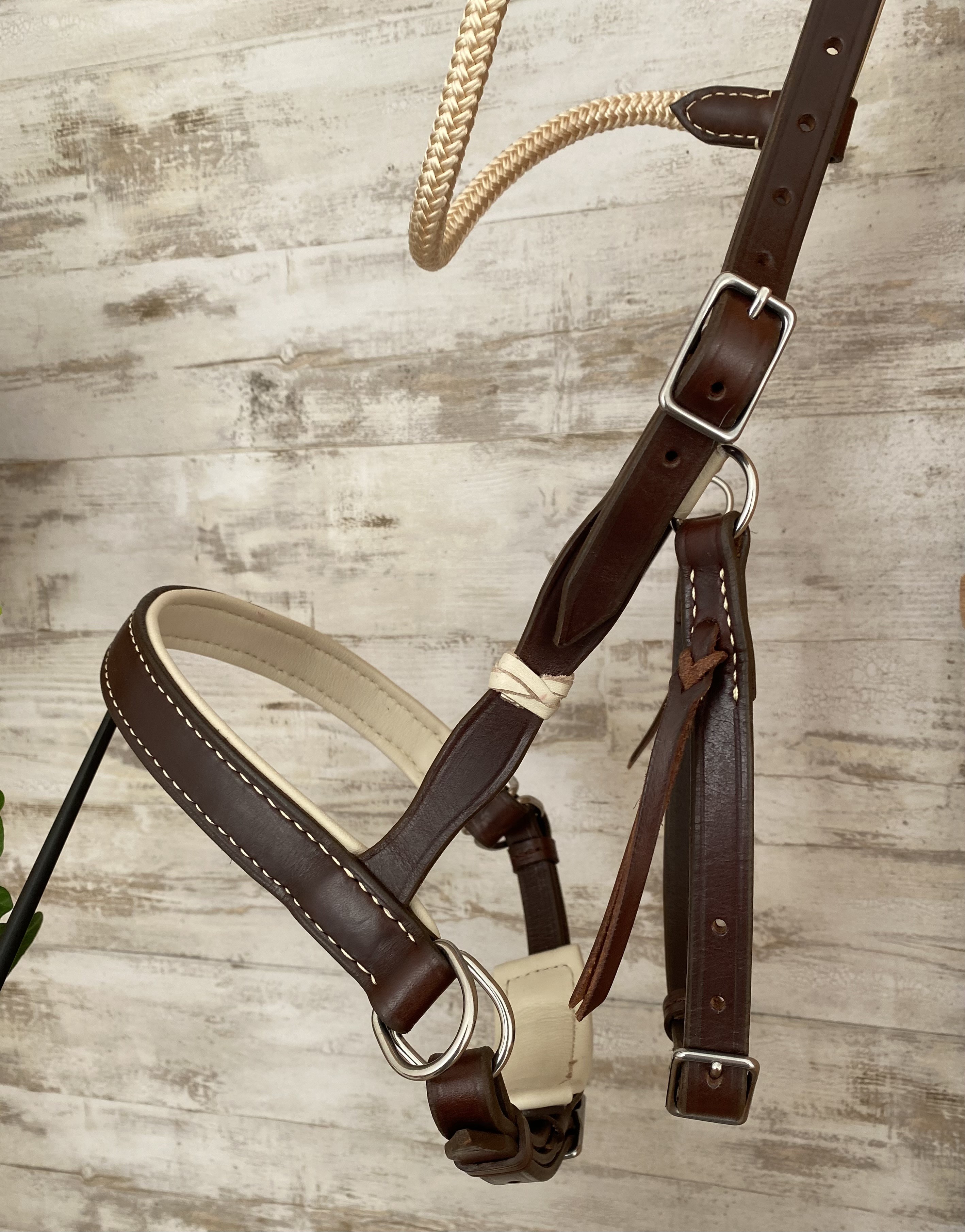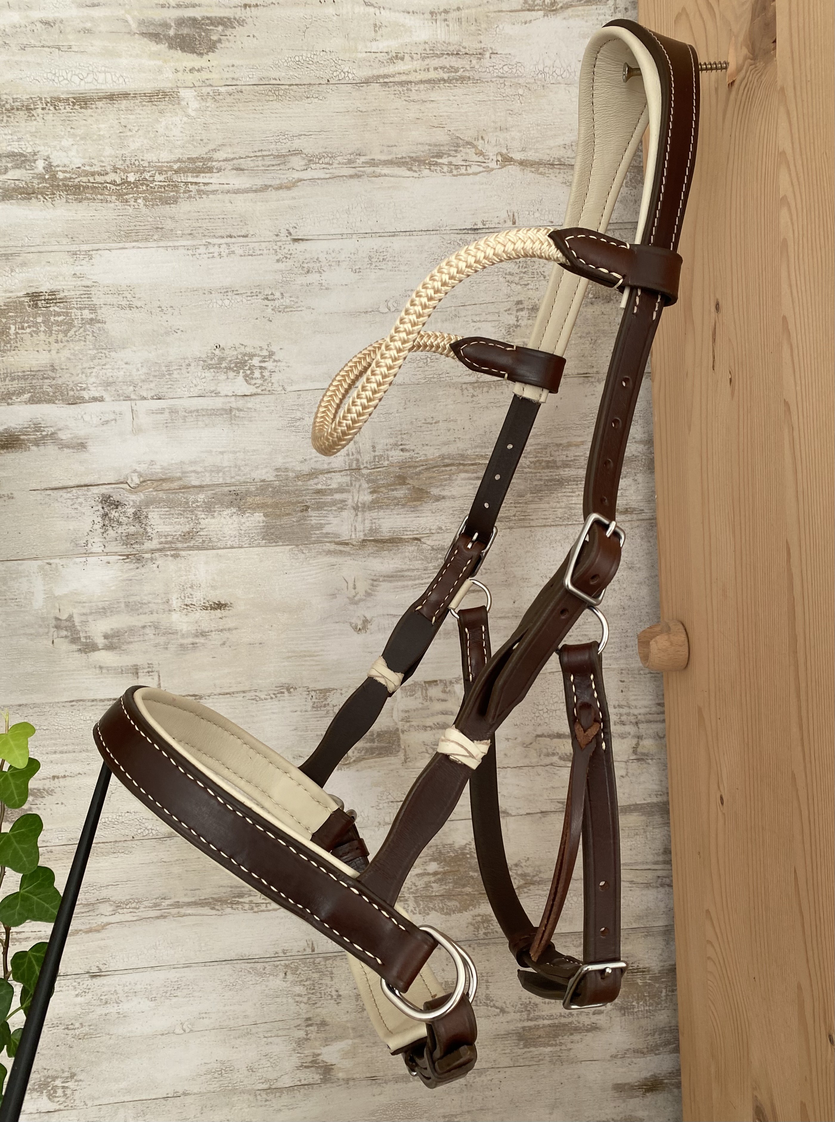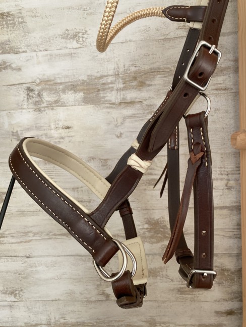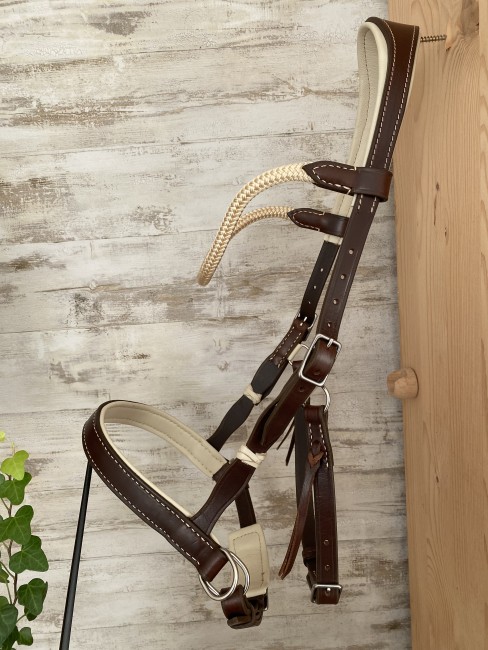 -> Il possèble un frontal en corde avec une têtière anatomique doublée, la muserolle est droite classique doublée.
