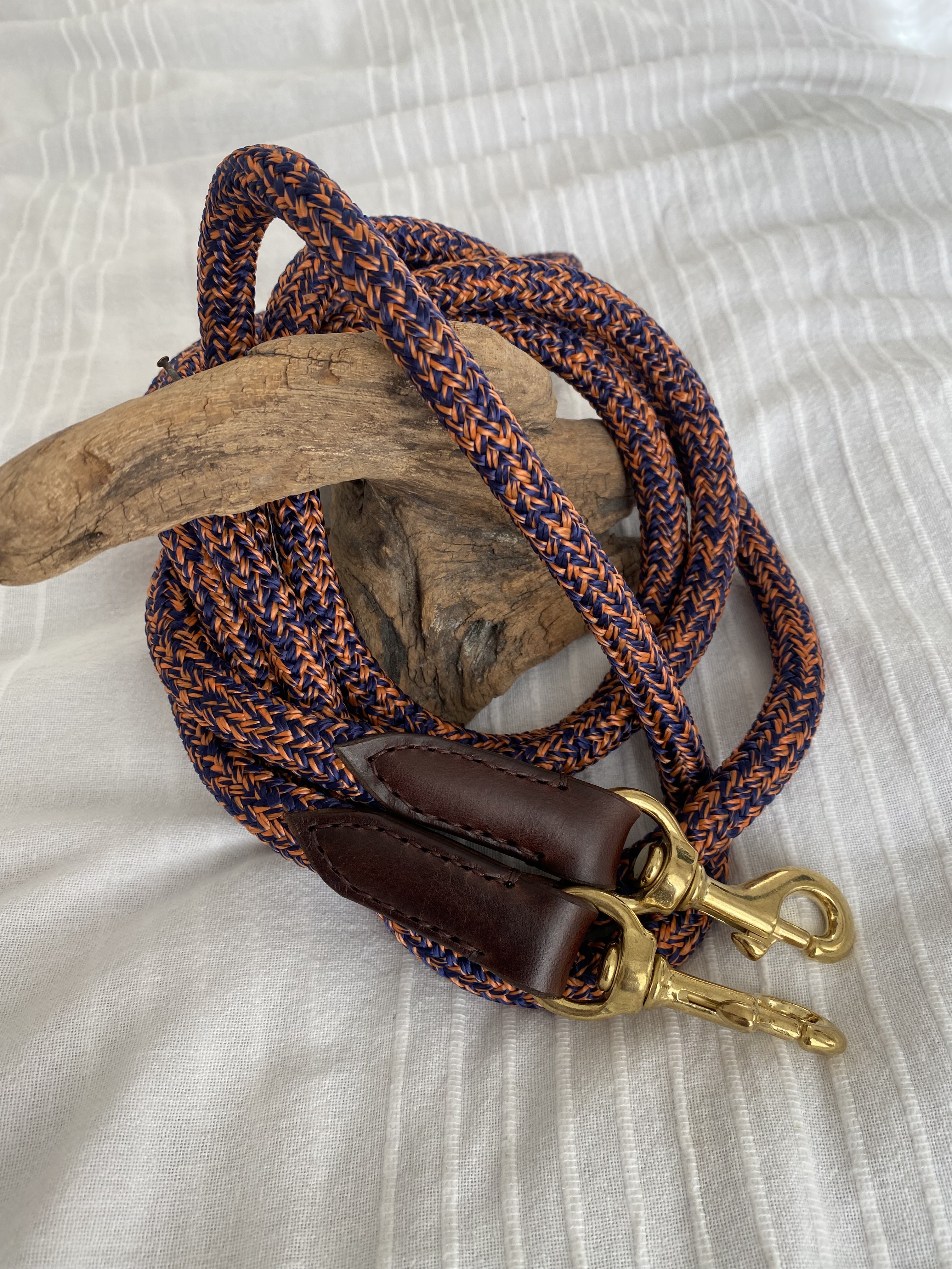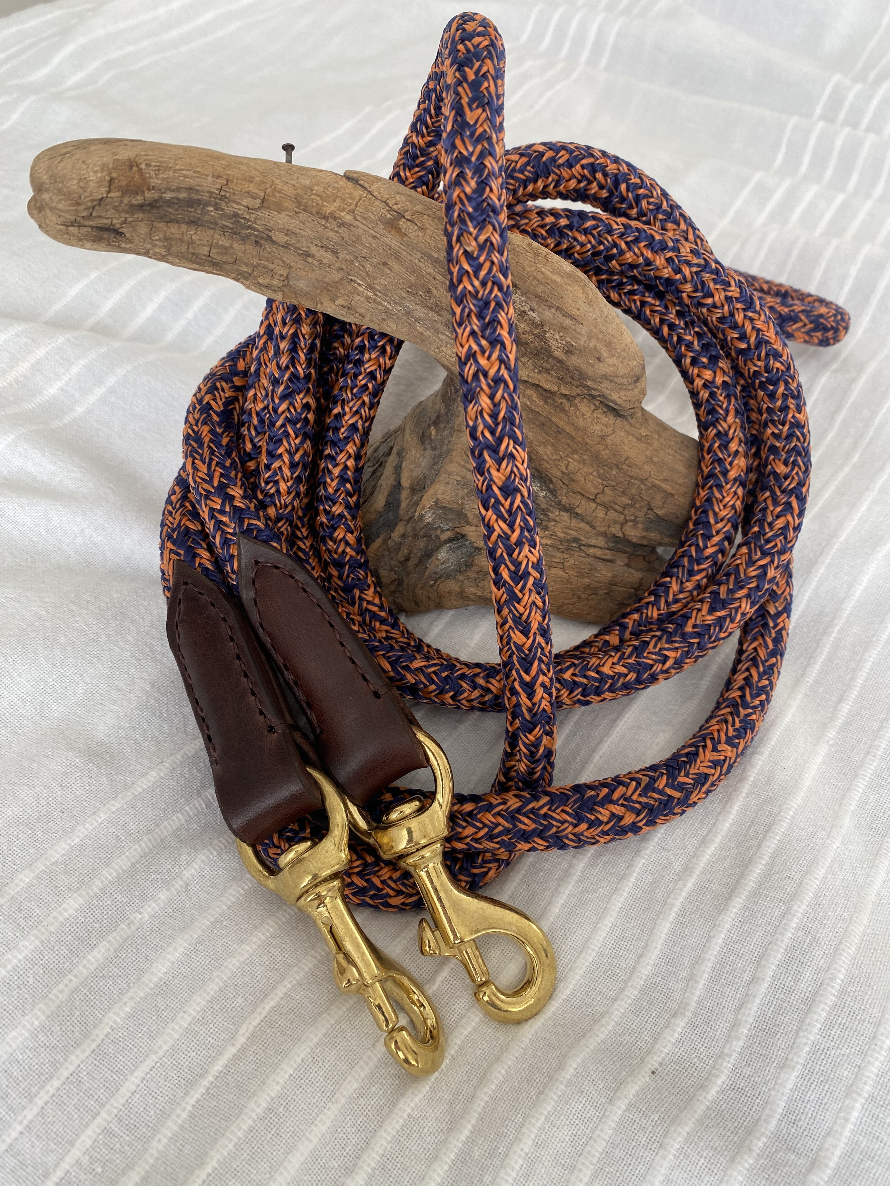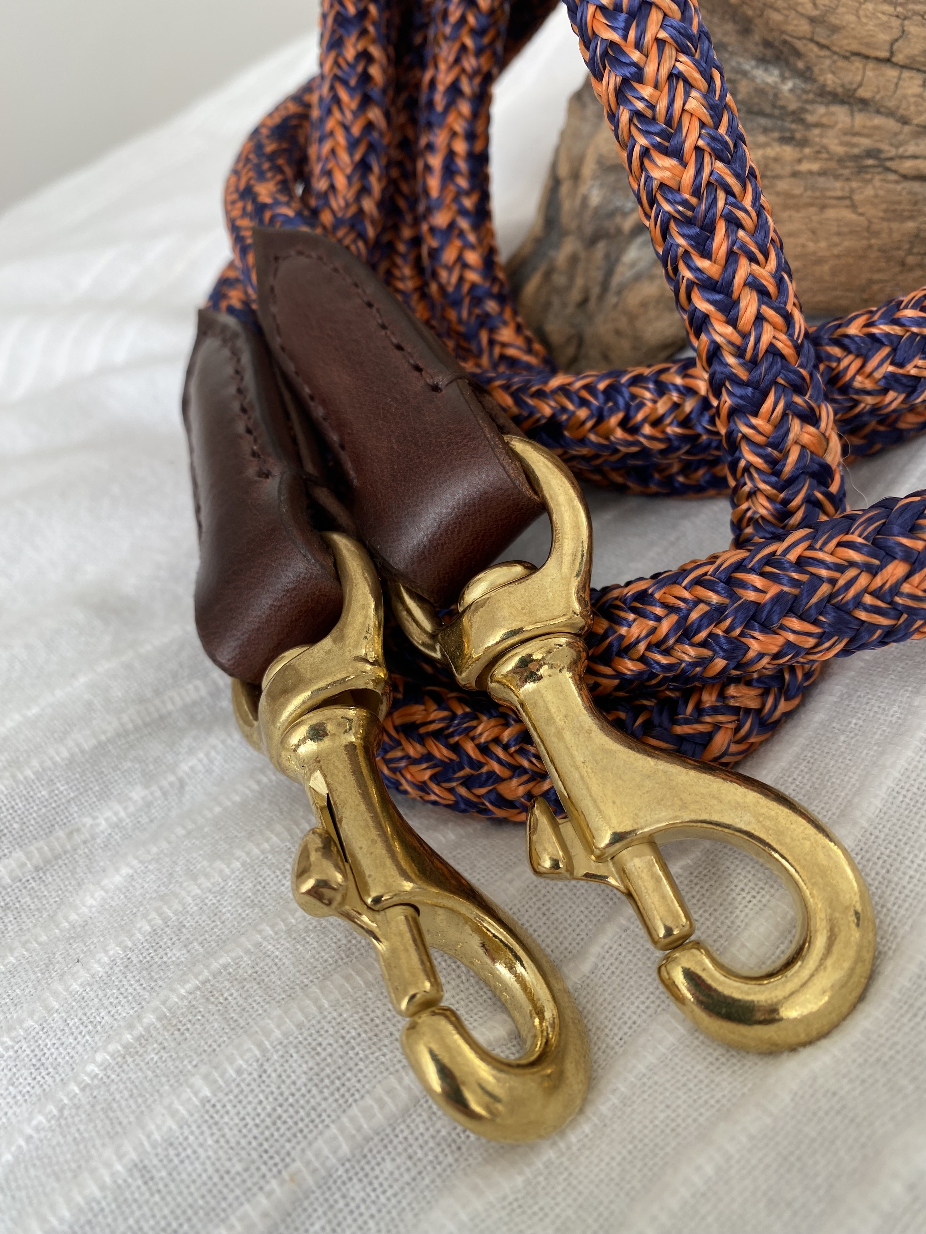 Rênes en corde 12mm de couleur Orange/Bleu marine très resistante, d'une longueur totale de 3m.