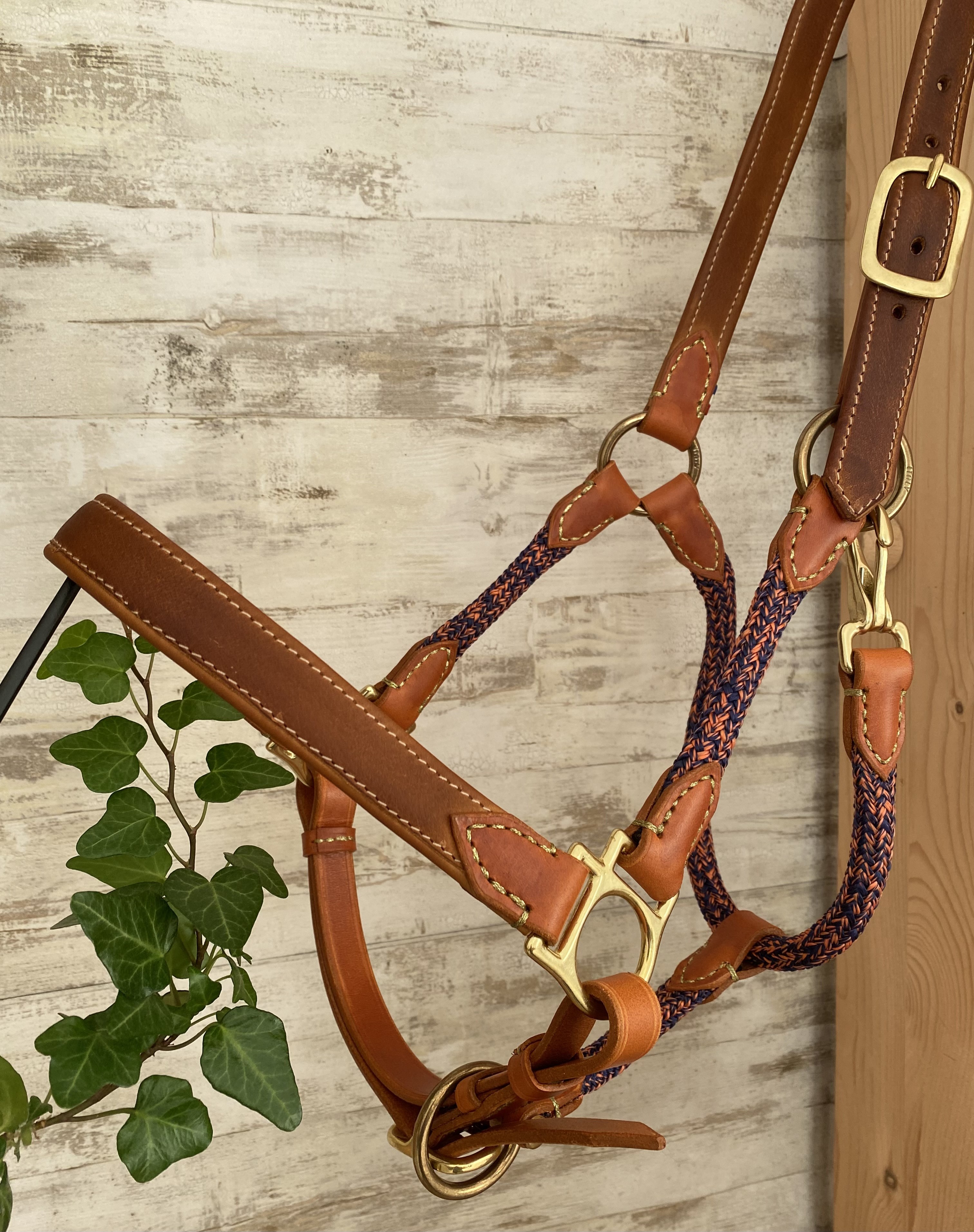 Il possède une muserolle droite avec les dés side pull, ainsi qu'une têtière droite en cuir souple doublé.