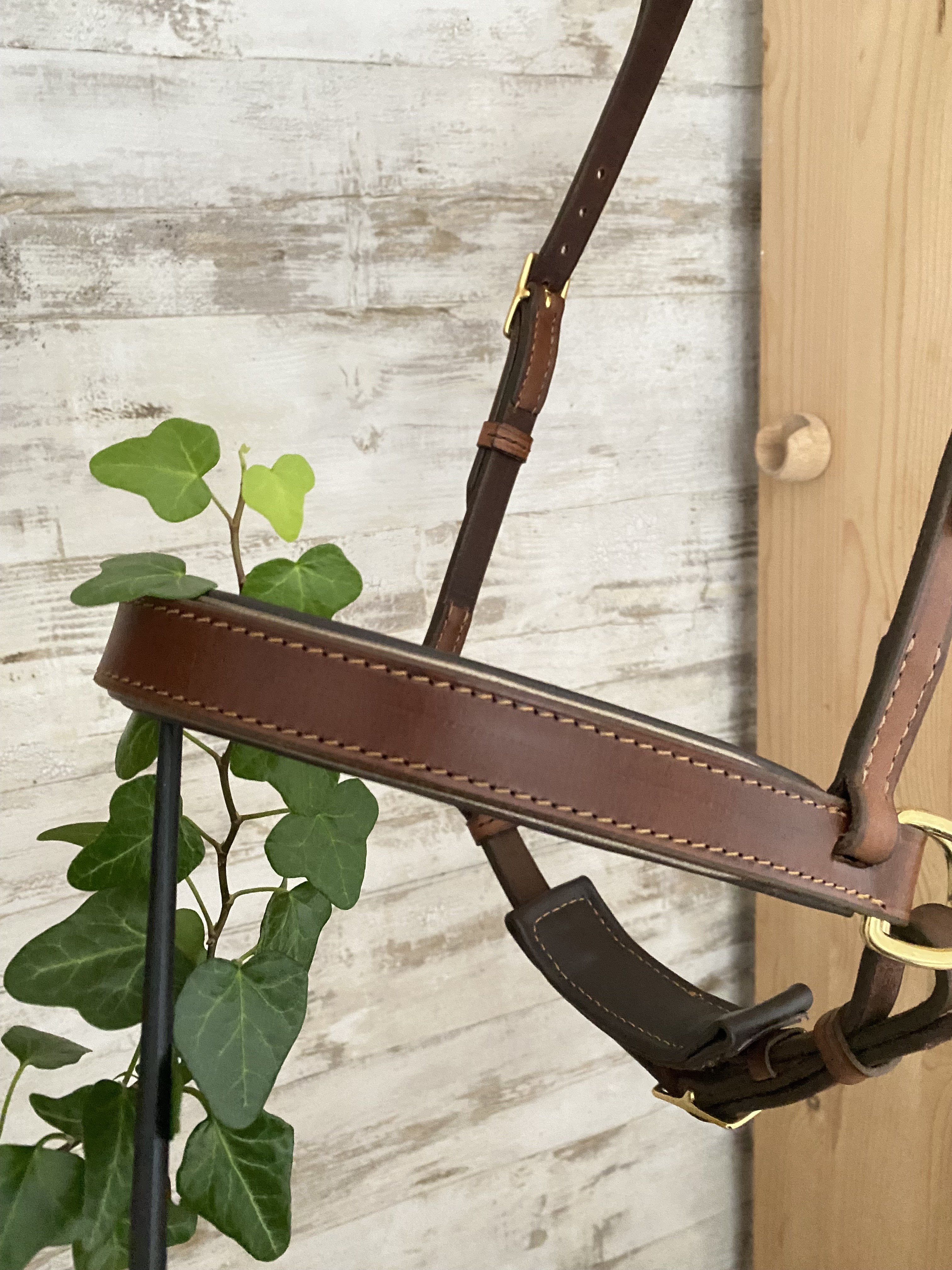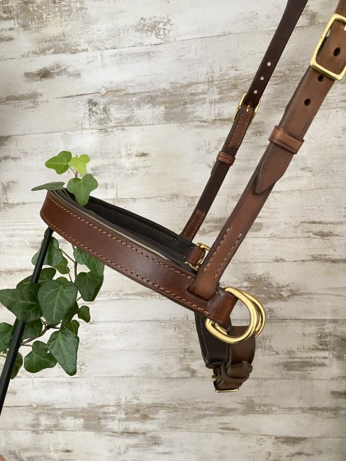 -> Il possèble une têtière droite sans doublure, la muserolle est droite doublée avec un liseré or.